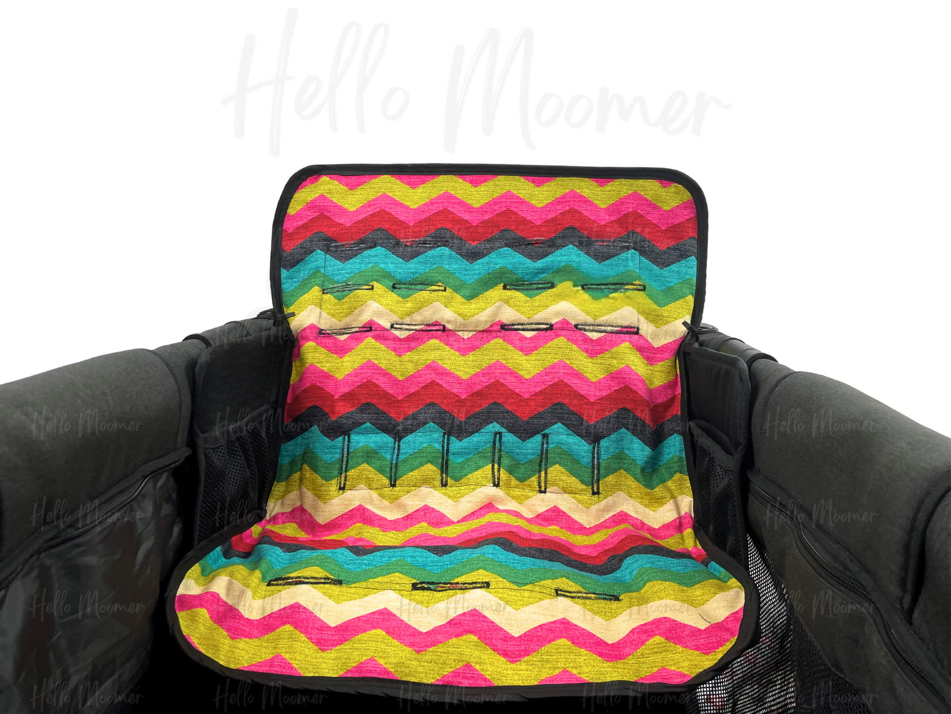 Add a pop of personality and all-day comfort to your stroller wagon with this eye-catching seat cover. Crafted from durable brushed canvas in a bold, multicolor zigzag pattern, it’s as stylish as it is functional.